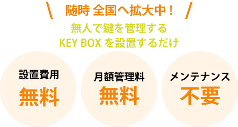 が対応いたします! KEY STATION利用者による鍵の紛失や盗難など、オーナー様以外の部分での鍵のトラブルに関してもオーナー様が責任を負うことは一切ありません。